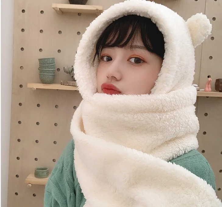 Медвежья шапка шарф все в одном Симпатичная зимняя двухслойная тепл...