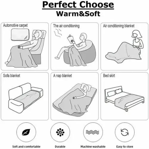 Снаружи очень мягкая ткань высокого качества, а внутри белая. Подходит для кровати, дивана, кемпинга, холодного кинотеатра или путешествий! Идеальный подарок для вашей семьи и друзей.