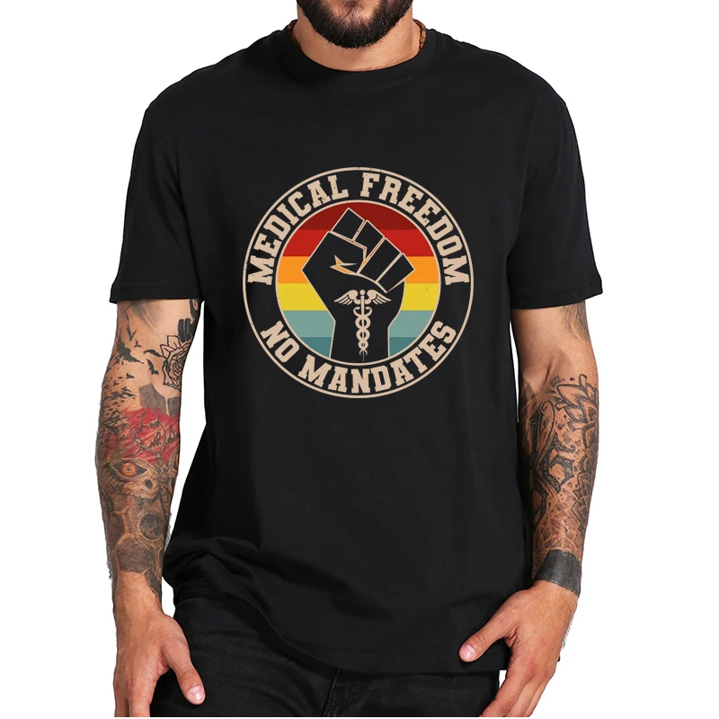 Футболка с защитой от прививки и мотивации медицинской свободы с остановкой мандатов, повседневные футболки, европейские размеры, футболки из 100% хлопка для мужчин и женщин