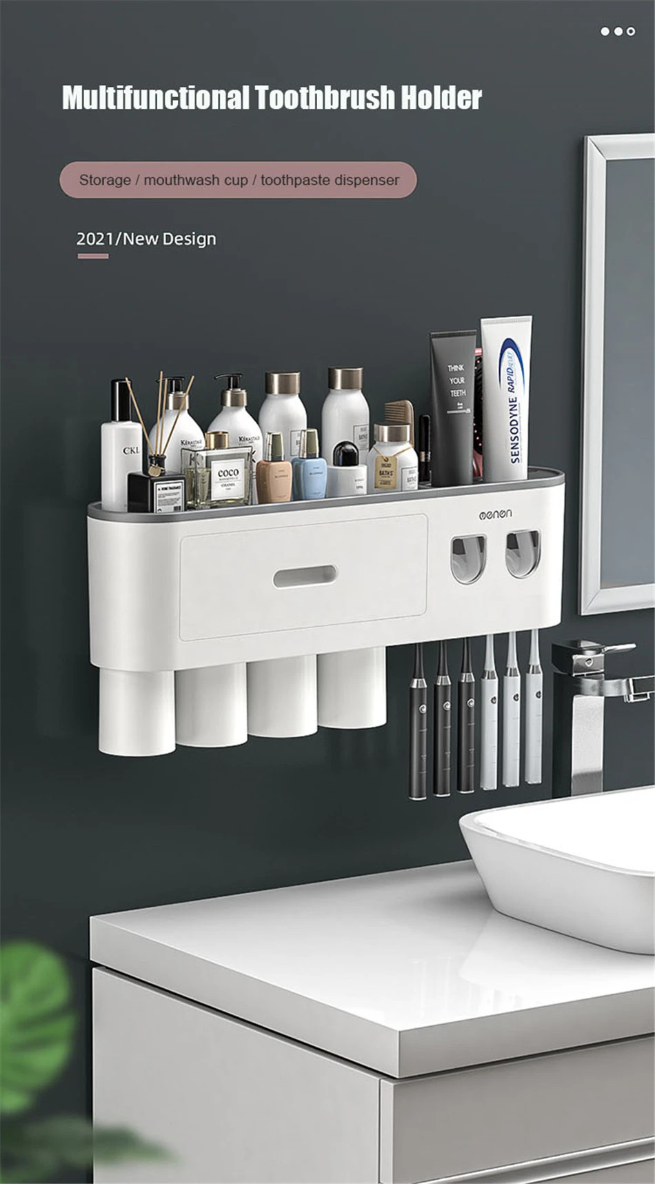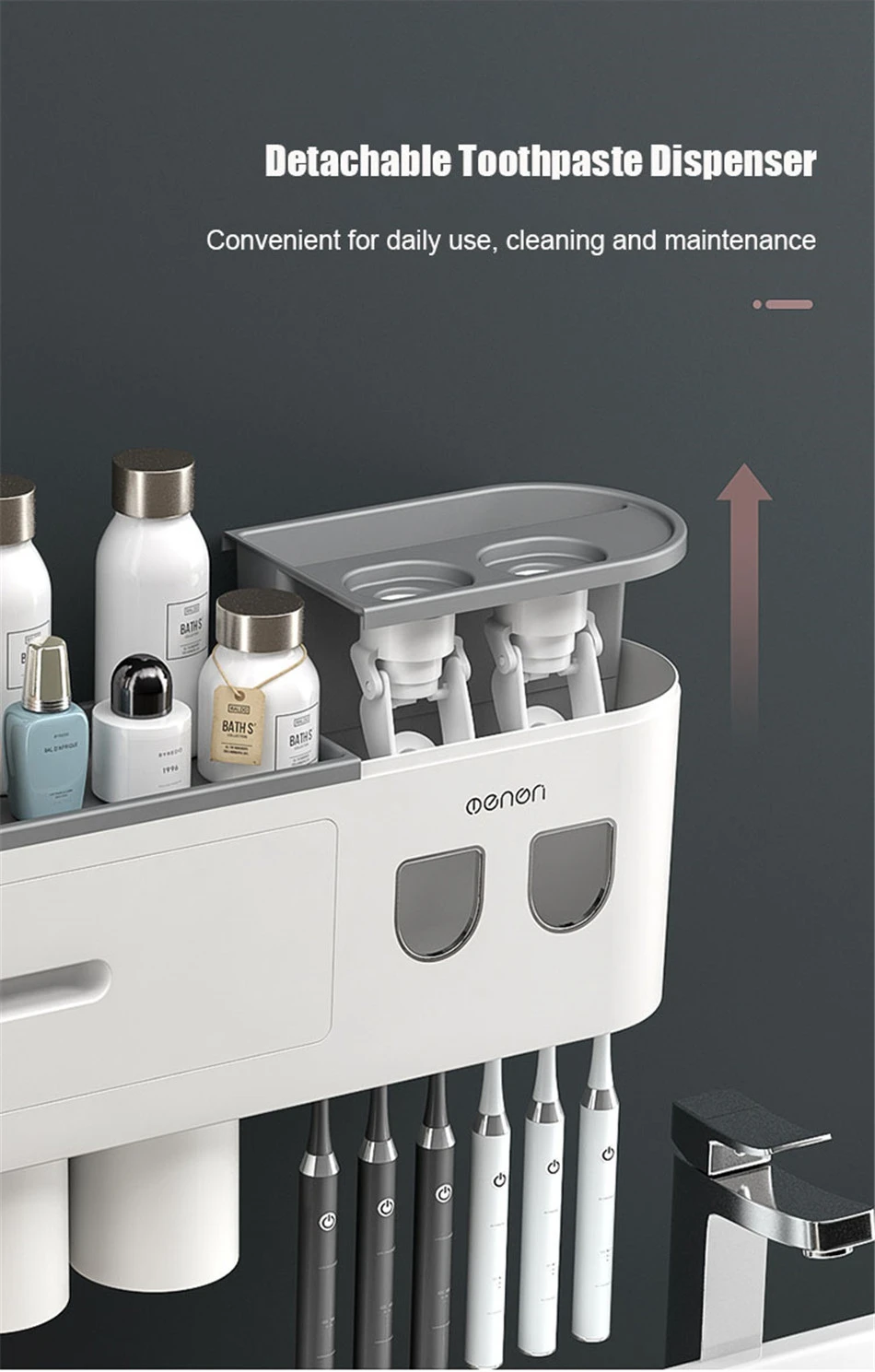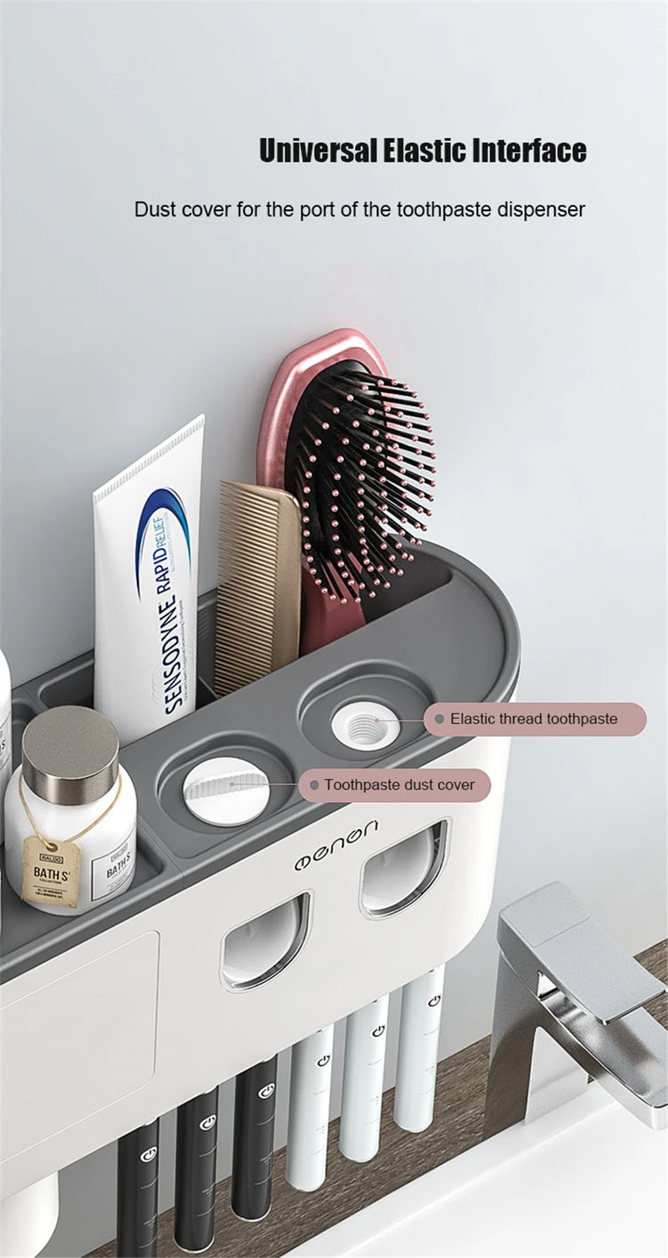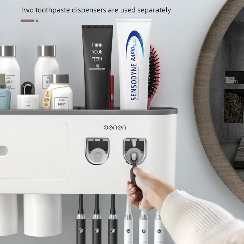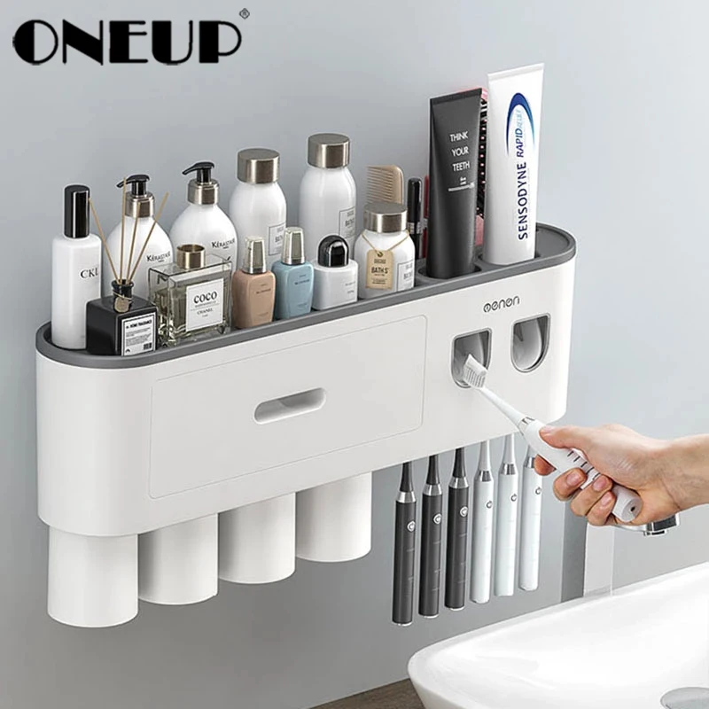 Настенный держатель для зубных щеток ONEUP, магнитная двойная Автоматическая стойка для хранения зубной пасты, дозатор, аксессуары для ванной комнаты