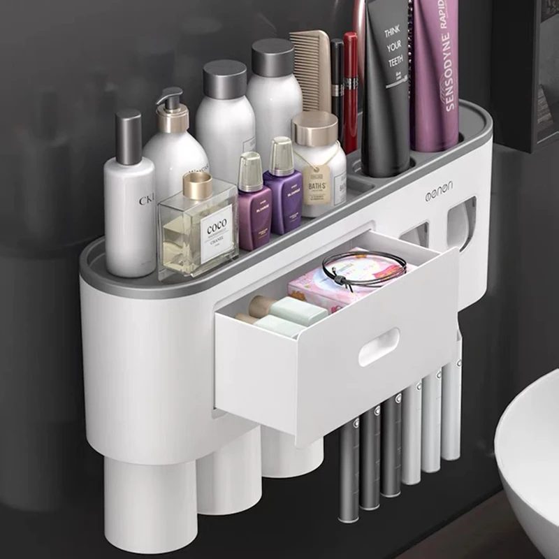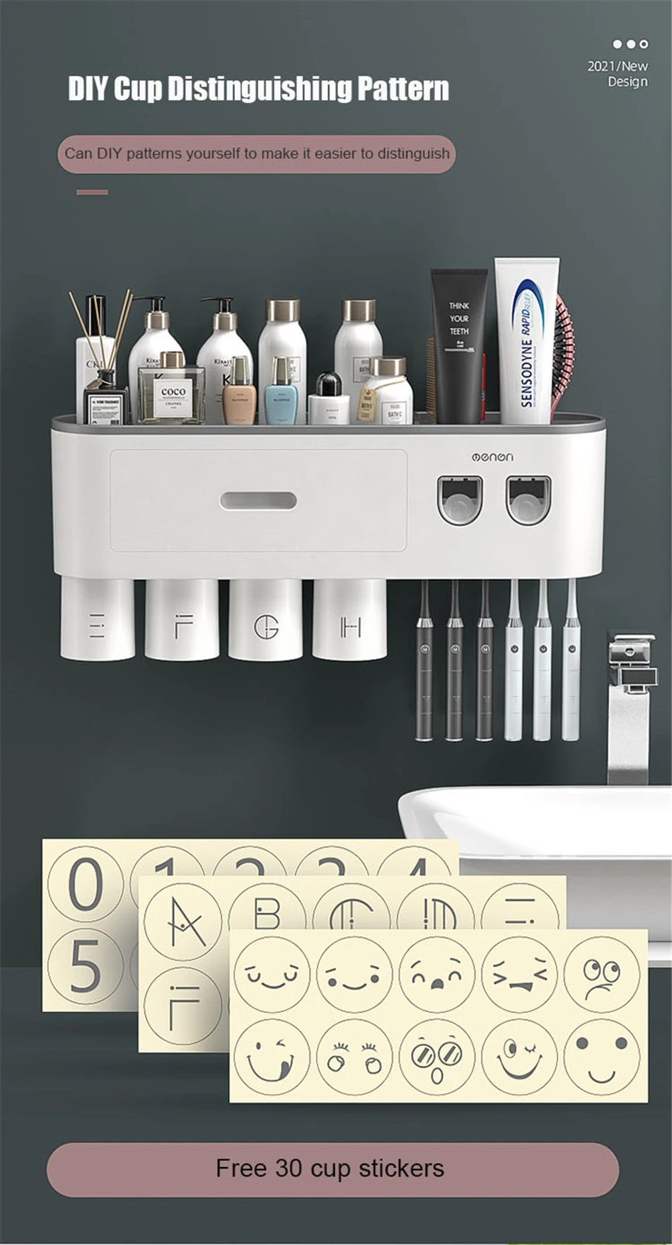 1. Многофункциональная зубная щетка держатель: стойка/хранение/чашка для полоскания рта/двойной дозатор зубной пасты, который объединяет держатель зубной щетки + 2 соковыжималки для зубной пасты + хранение в одном.2. Здоровый и без запаха: экологически чистый материал ABS.3. Магнитная подвеска адсорбционная чашка: легко брать и пылеотталкивать.4. Съемный дозатор зубной пасты: легко чистить для ежедневного использования.