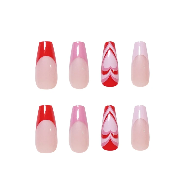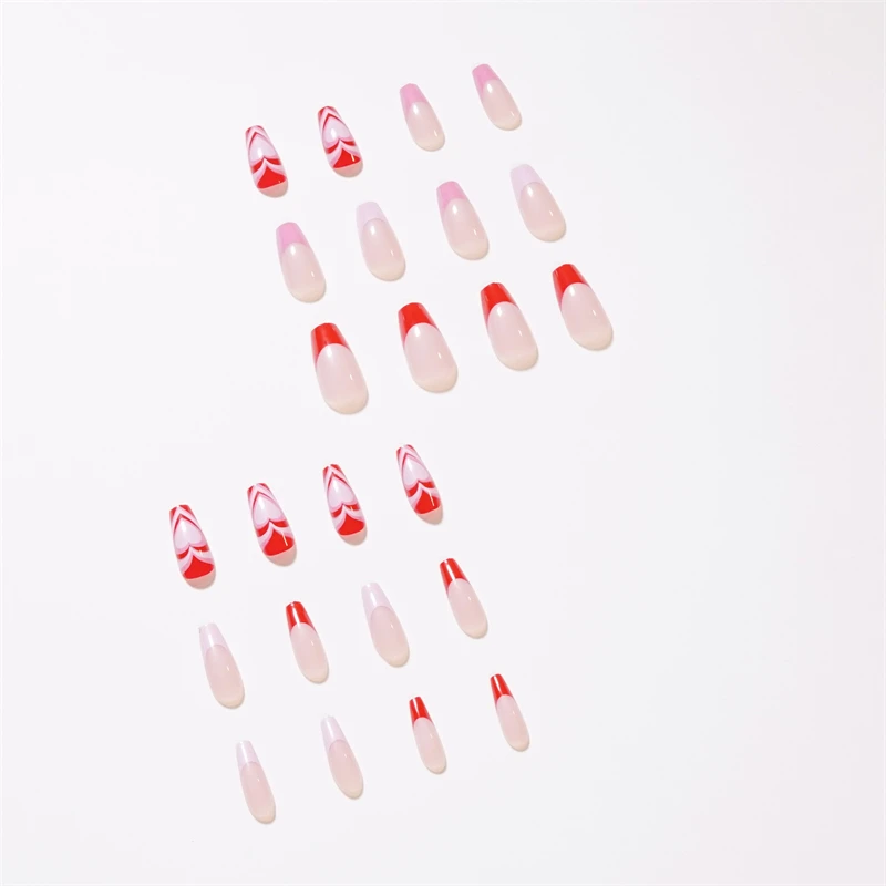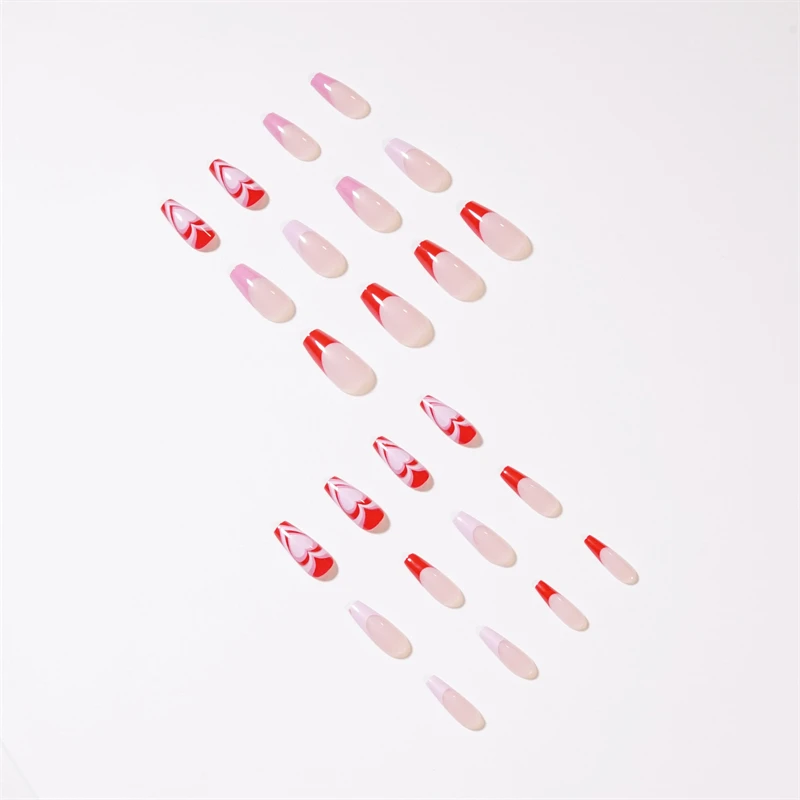 24 шт. длинные гробные накладные ногти французский рисунок сердца Д...