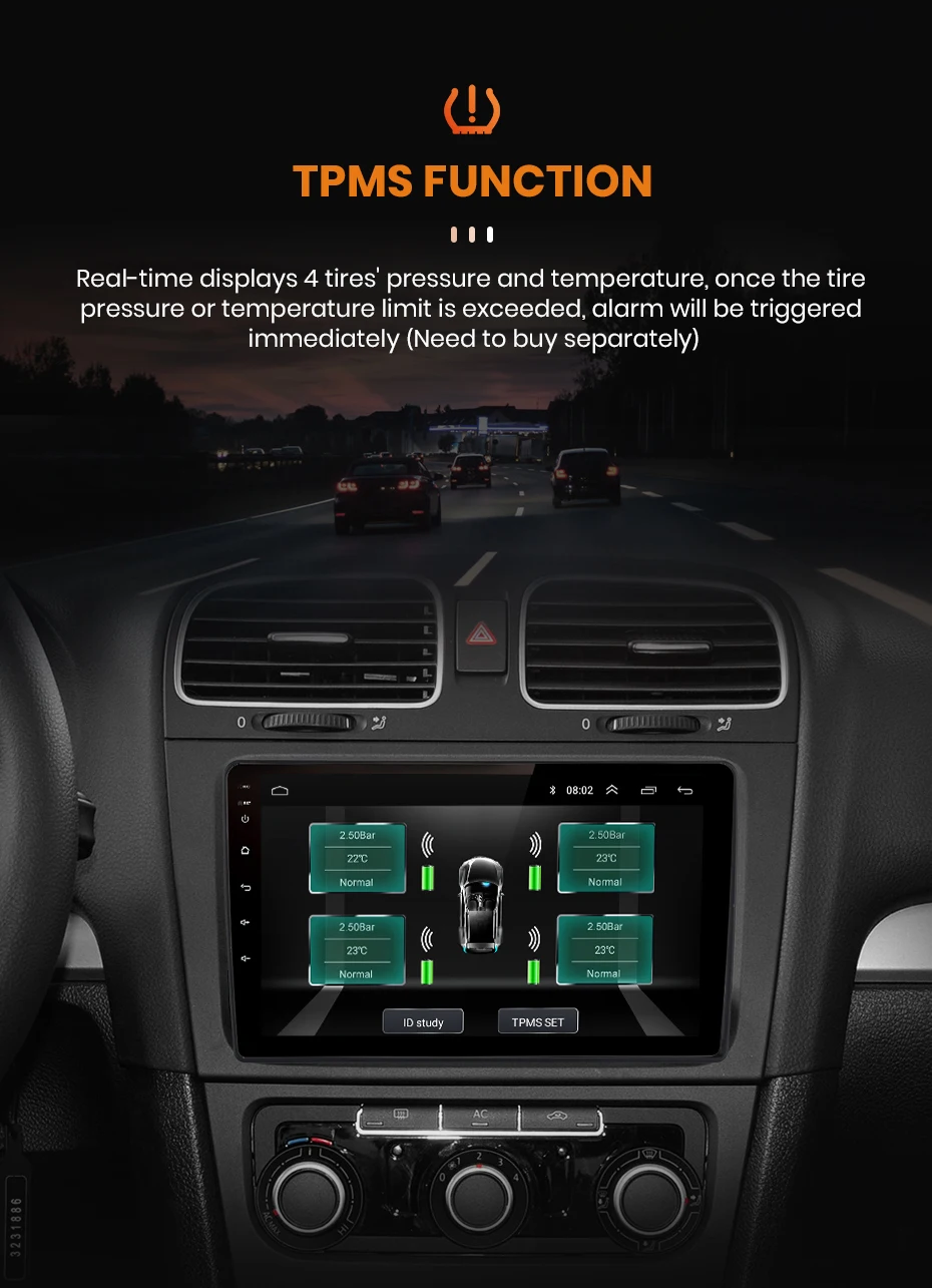 Отображает 4 давления и температуры в режиме реального времени. Как только давление или температура в шинах будут необычными, сразу же будет сигнал тревоги.