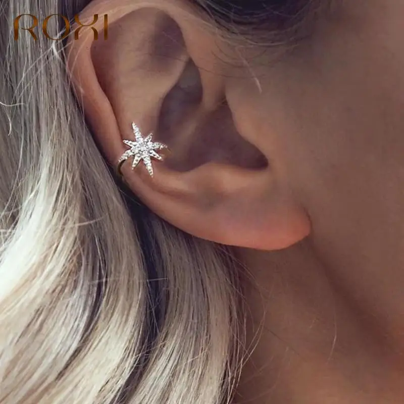 ROXI милые красочные хрустальные серьги на клипсах для женщин из стерлингового серебра 925 пробы без Имитация пирсинга серьги, Надеваемые На ушной хрящ ювелирные изделия Aros