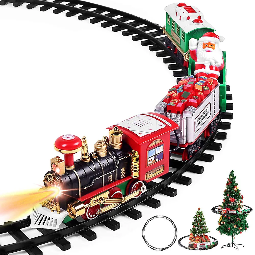 Рождественская электрическая гоночная дорога в сборе, автомобиль, поезд, игрушка для мальчиков, подарок со звуком, подсветкой, музыкой, строительный блок, украшение для елки, рождественский подарок