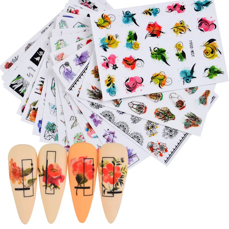 1 Лист Листья наклейки для ногтей цветы в виде геометрических фигур...