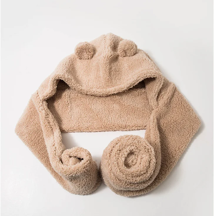 Медвежья шапка шарф все в одном Симпатичная зимняя двухслойная тепл...