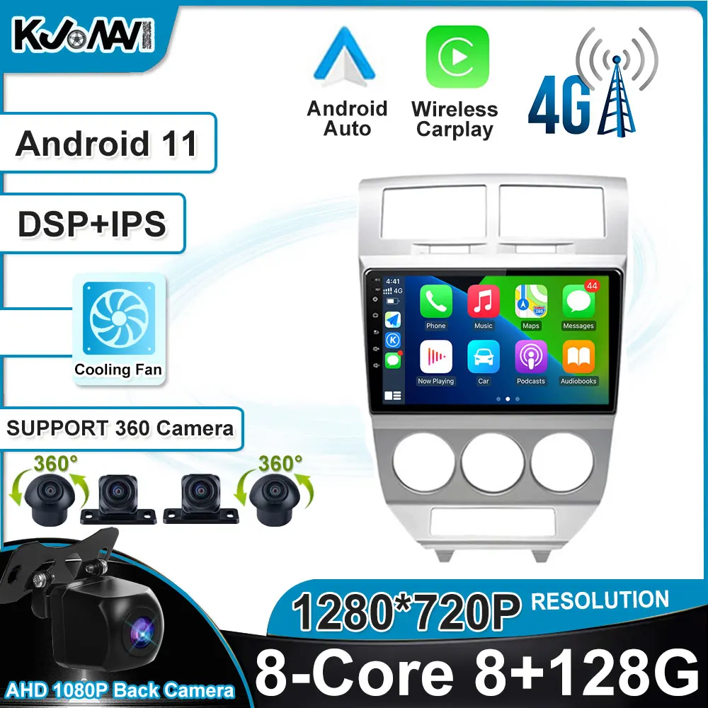 DSP беспроводной Carplay Android 11 для Dodge Caliber 2007-2010 автомобильное радио мультимедийный стерео плеер WiFi GPS навигация без DVD