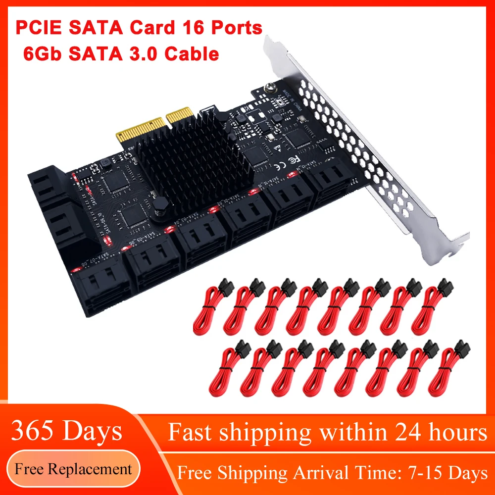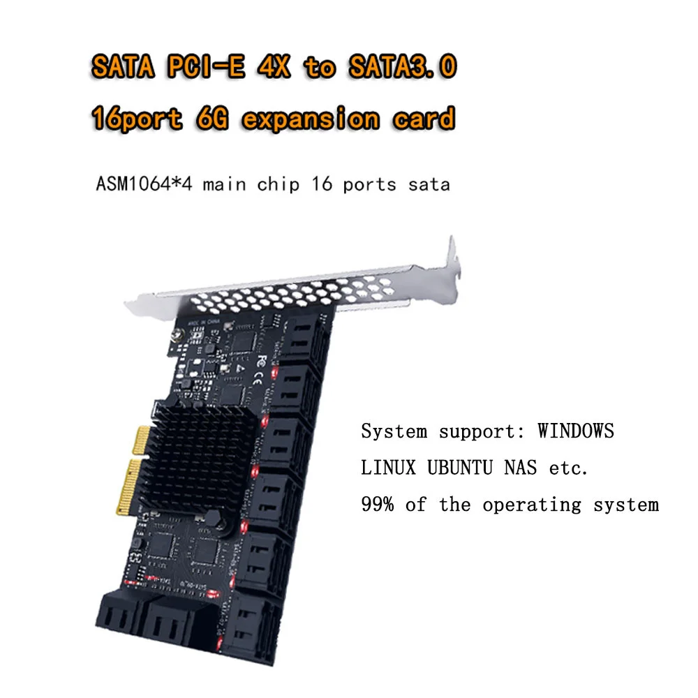 PCIE SATA Card 16 портов 6 ГБ SATA 3,0 PCIe карта Pci Express X4 PCI Слоты поддержка 16 SATA 3,0 контроллер карта расширения для майнинга