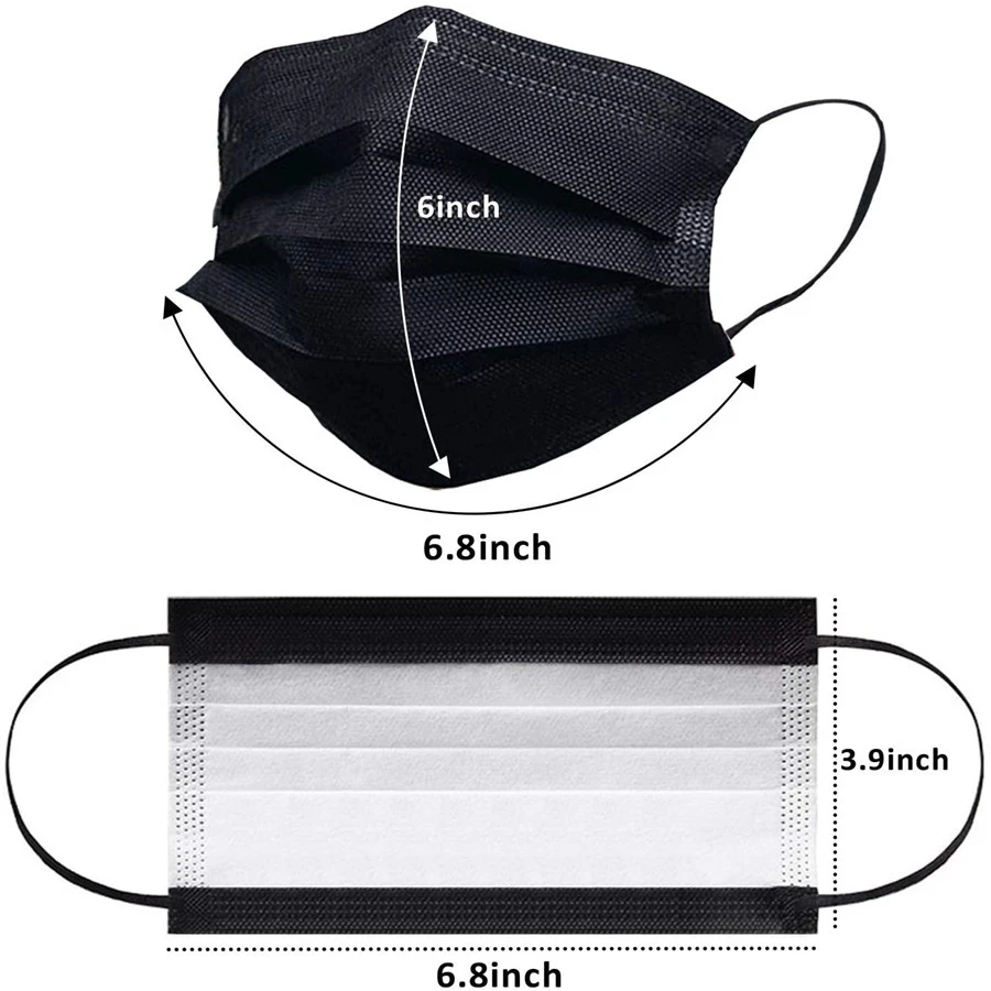 Одноразовая маска для лица, черная маска для рта, 3-слойная Неткана...