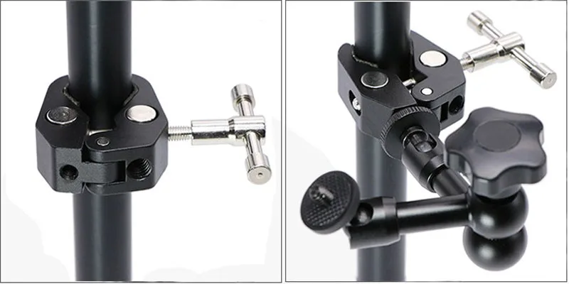 Супер Зажим-это очень универсальный и полезный инструмент, особенно для удержания ЖК-монитора и цифровой зеркальной камеры.