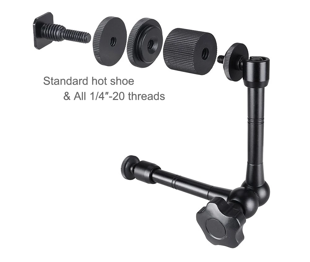 Одна сторона имеет 1/4 "винт, соединяющийся с монитором, светодиодный светильник или другие аксессуары.