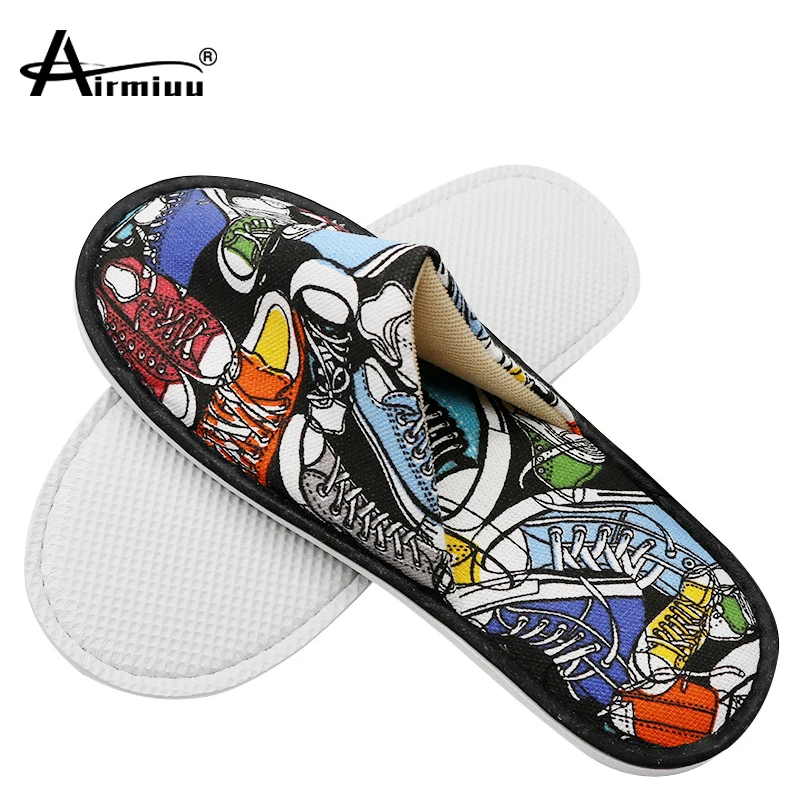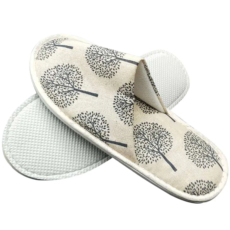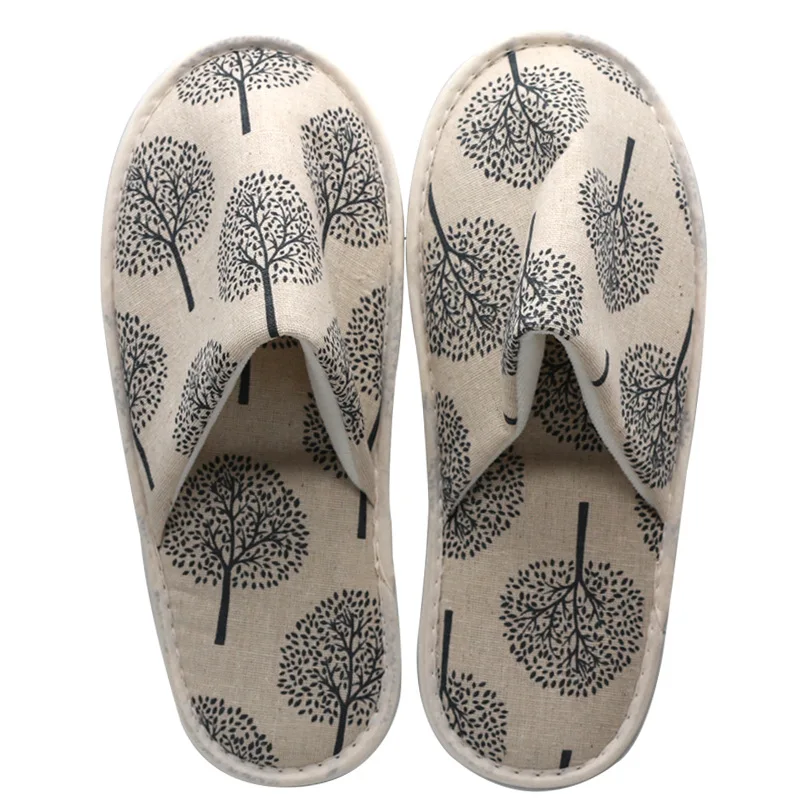 Шлепанцы унисекс льняные для мужчин и женщин, одноразовые тапочки для гостиниц, путешествий, спа, домашних гостей, Симпатичные Нескользящие сланцы с принтом