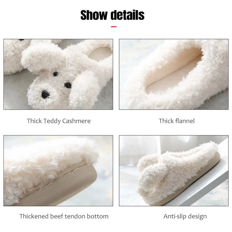 Домашние тапочки для пар, Теплые Симпатичные женские и мужские тапочки, зимняя обувь, новинка 2021, модные Нескользящие повседневные плюшевые шлепанцы с мультяшным мехом для собак