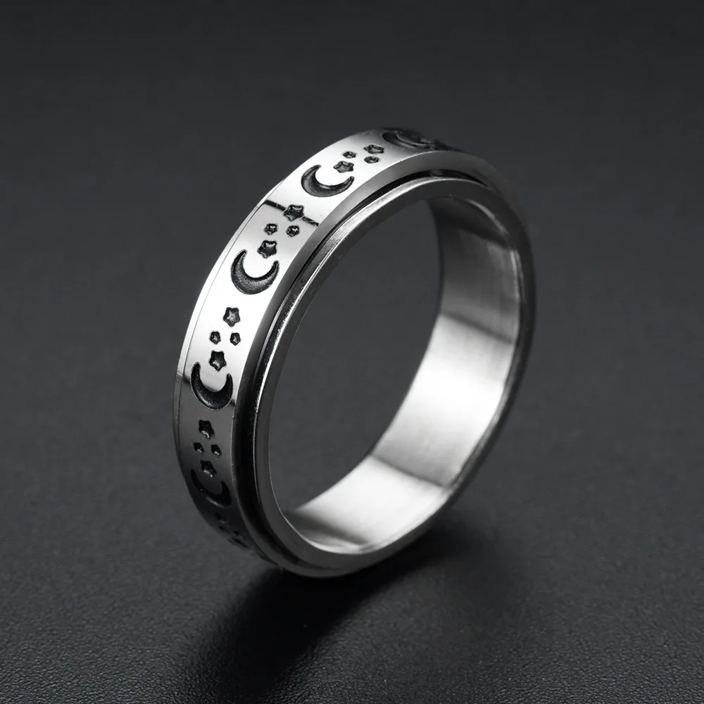 Новое модное вращающееся кольцо для мужчин и женщин, тревожные кольца, титановая сталь, Луна, звезда, цветок, римские цифры, цепочка, вращающееся кольцо