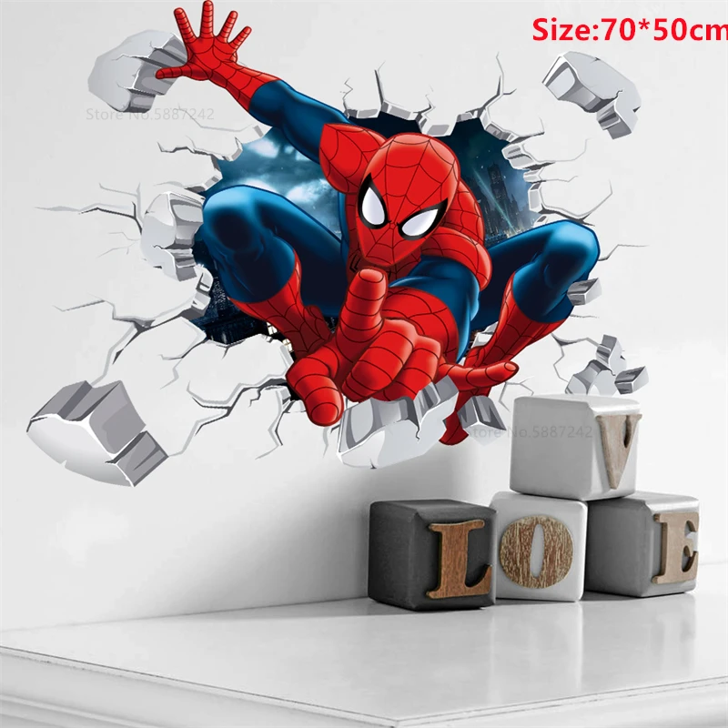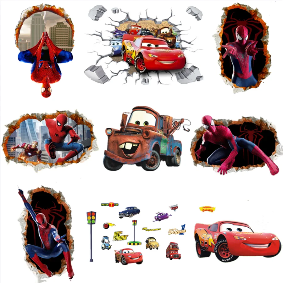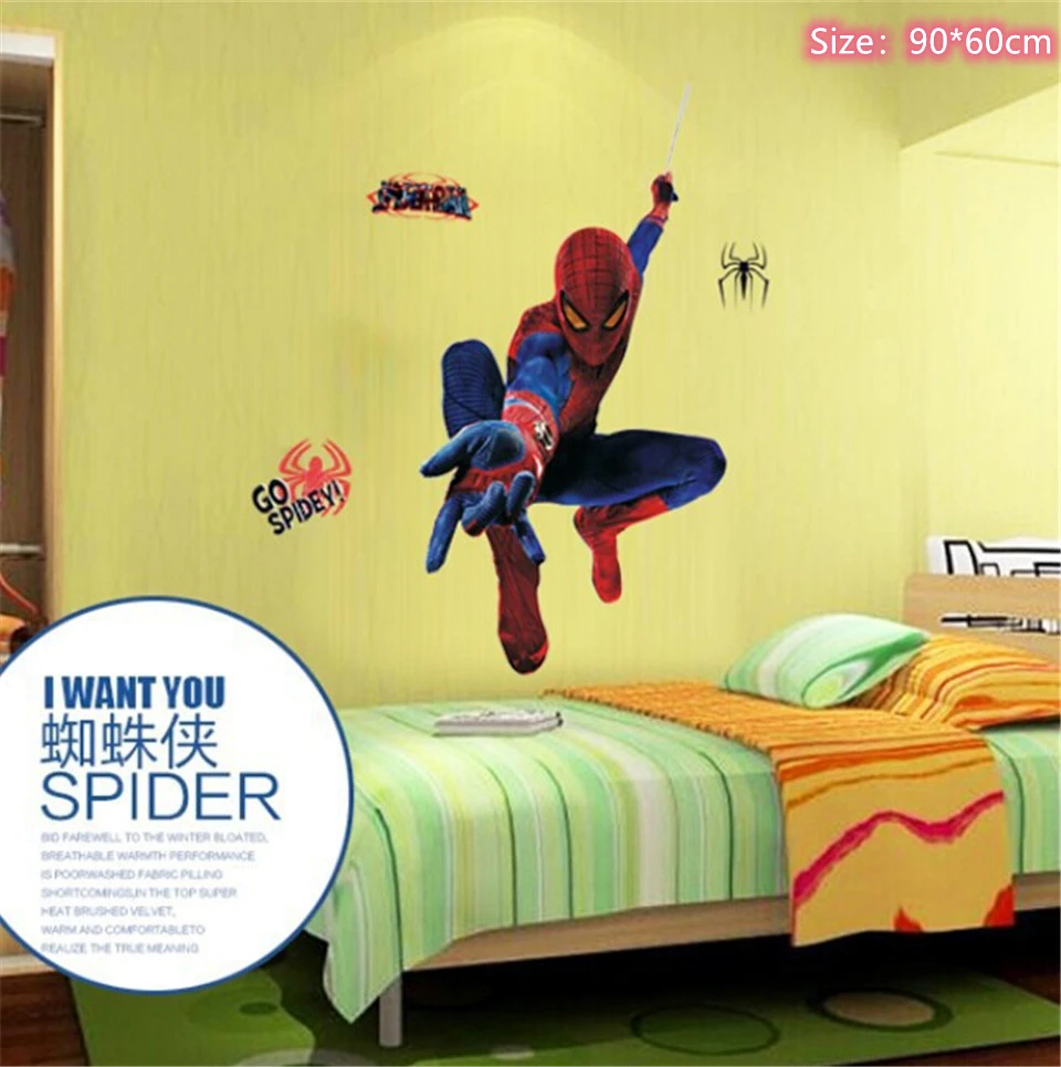 90x60 Большой Человек-паук автомобили наклейки на стену для детской комнаты декор для спальни Человек-паук 3d обои виниловые аниме постер Детская Наклейка для мальчиков