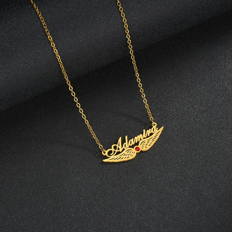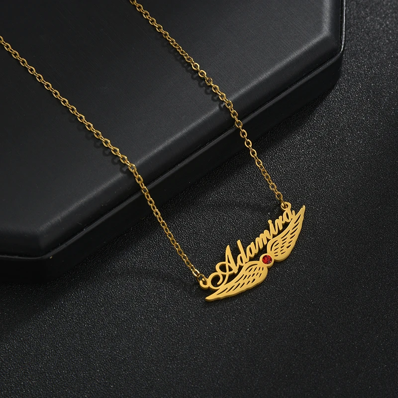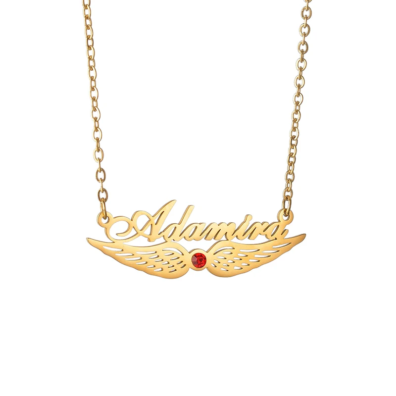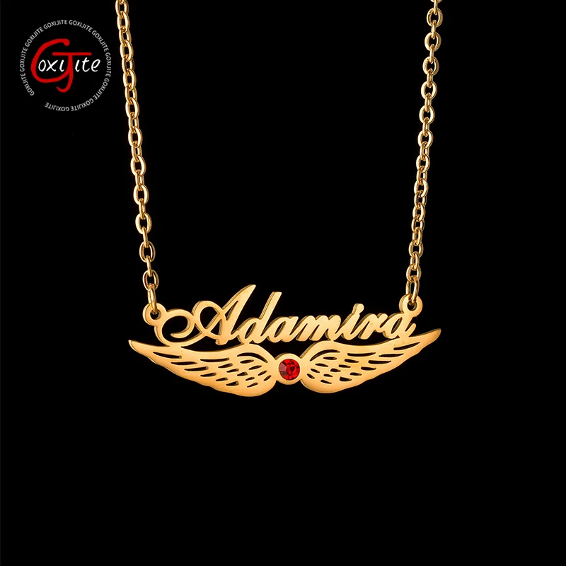Название: Goxijite персонализированные нижние Крылья Циркон имя ожерелье из нержавеющей стали на заказ камень по дню рождения табличка Чокеры женский подарок на день рождения