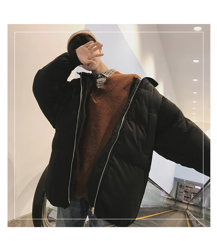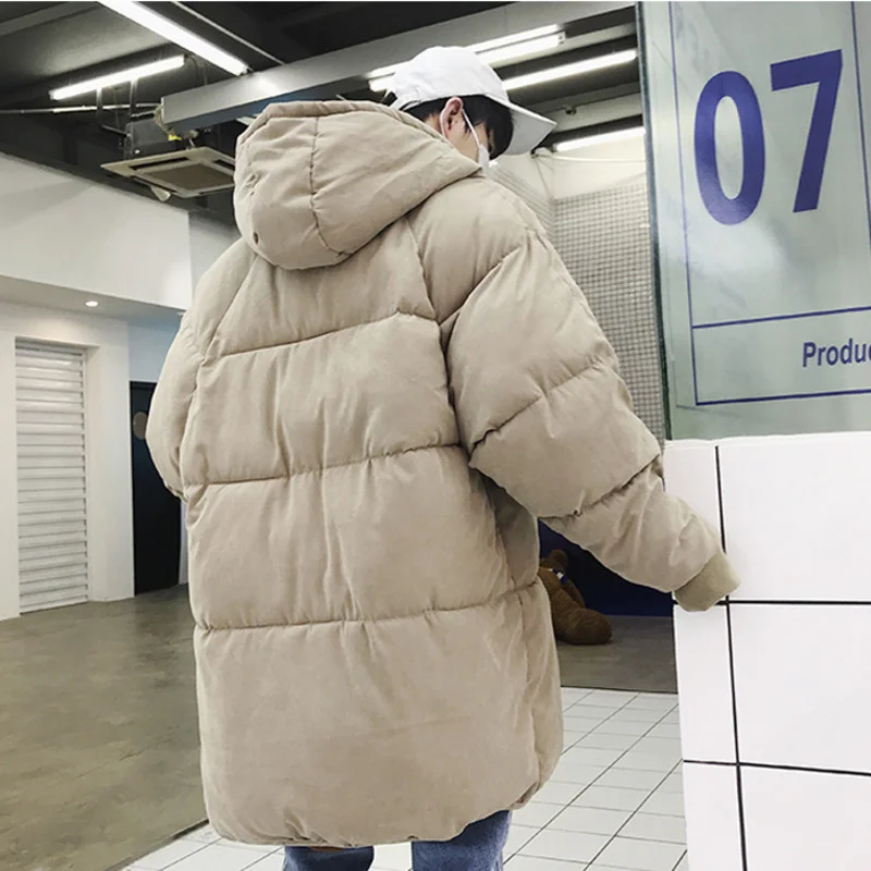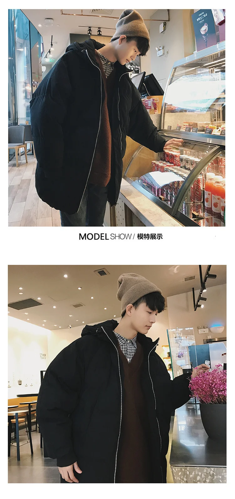 Мужская зимняя куртка в стиле Харадзюку, однотонная теплая хлопкова...