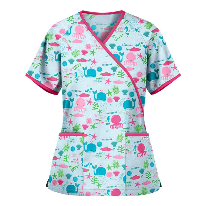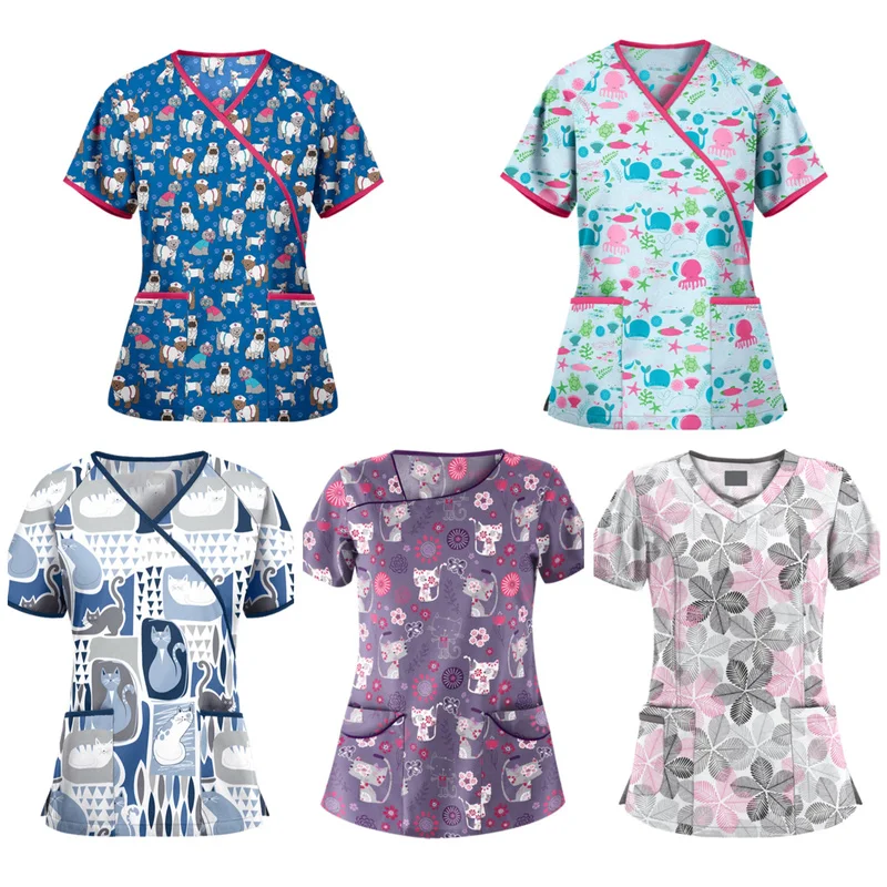 Медицинская Униформа с мультяшным принтом, Женские топы с коротким ...