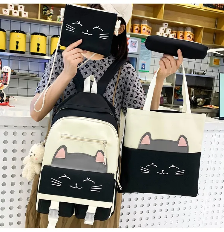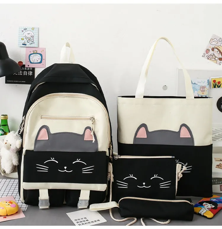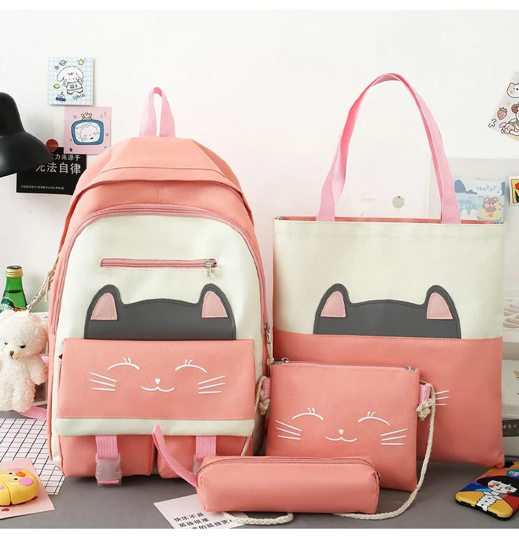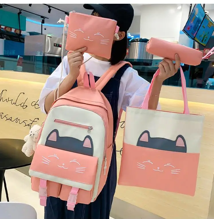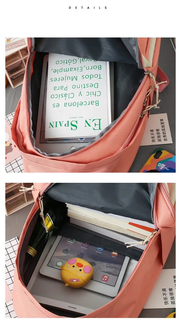 Набор из 4 шт., милые школьные сумки для девочек, модный холщовый женский рюкзак, кавайная сумка для учеников начальной школы, повседневный рюкзак для книг для подростков, 2021