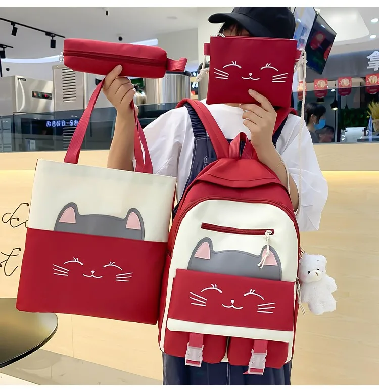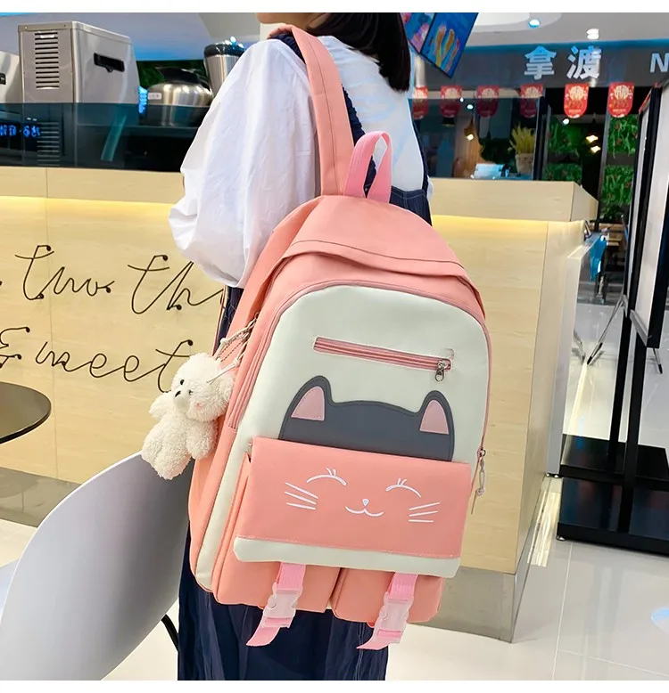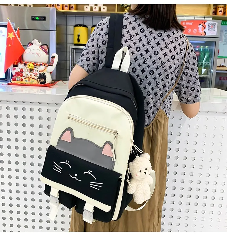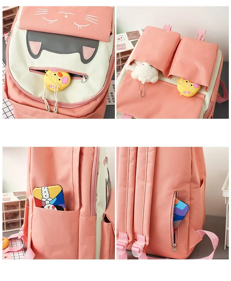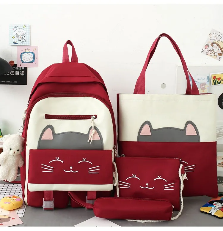 Набор из 4 шт., милые школьные сумки для девочек, модный холщовый женский рюкзак, кавайная сумка для учеников начальной школы, повседневный рюкзак для книг для подростков, 2021