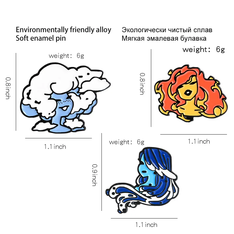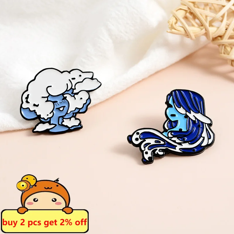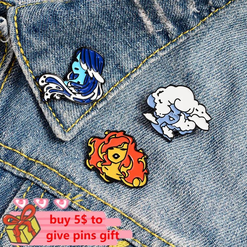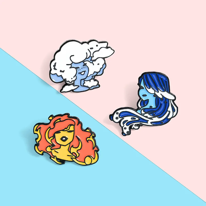 Эмалированная булавка для девочек в виде воздушного облака, огня, воды, забавное искусство с натуральными элементами, булавка для лацкана, значок, ювелирное изделие для девушек, оптовая продажа