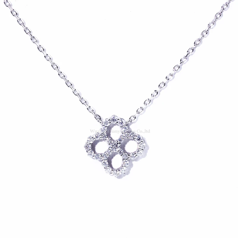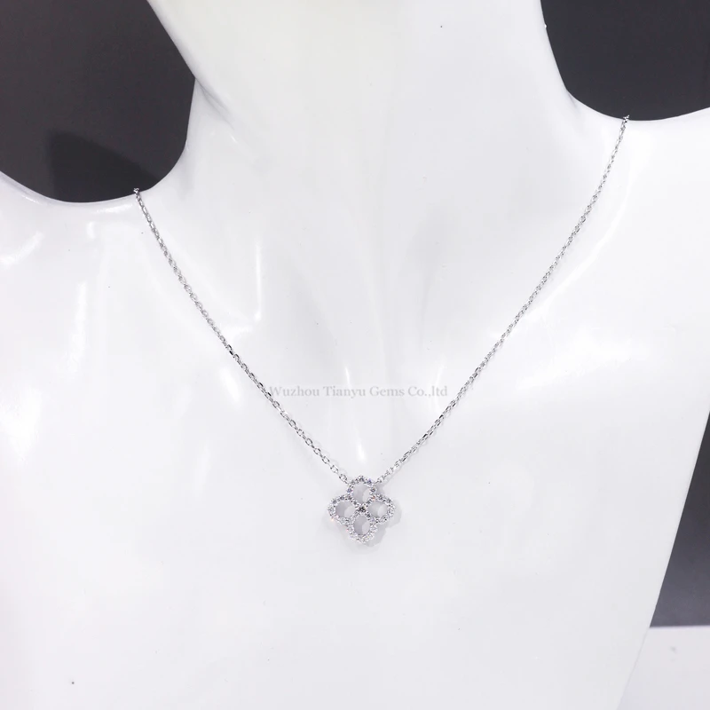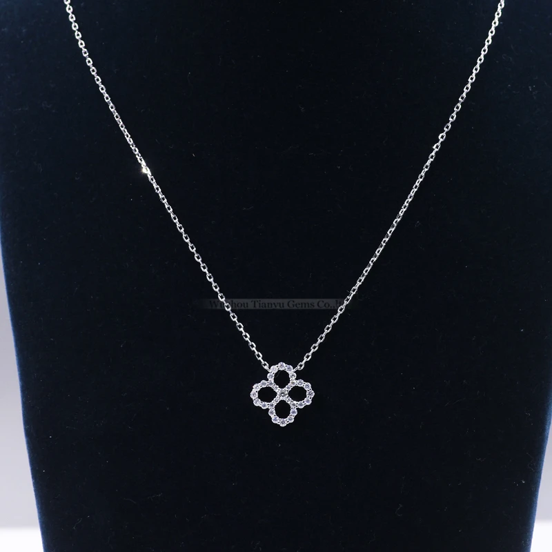Tianyu драгоценные камни серебро Клевер четырехлистник кулон ожерелье 2,5 мм Муассанит Бриллианты 18k позолоченное свадебное ожерелье Подарки для женщин