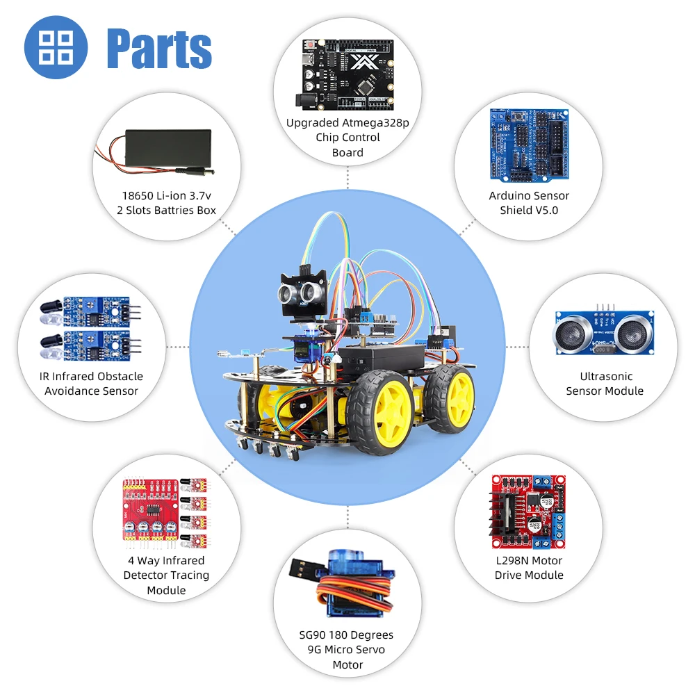 Этот набор идеально подходит для начинающих энтузиастов робототехники и может расти по мере развития ваших знаний. Добавьте его в вашу сборную робототехнику! Если вы хотите построить более продвинутых роботов, вы всегда можете добавить микроконтроллер, такой как Arduino, к основному роботу и начать Программирование более сложного образа жизни.