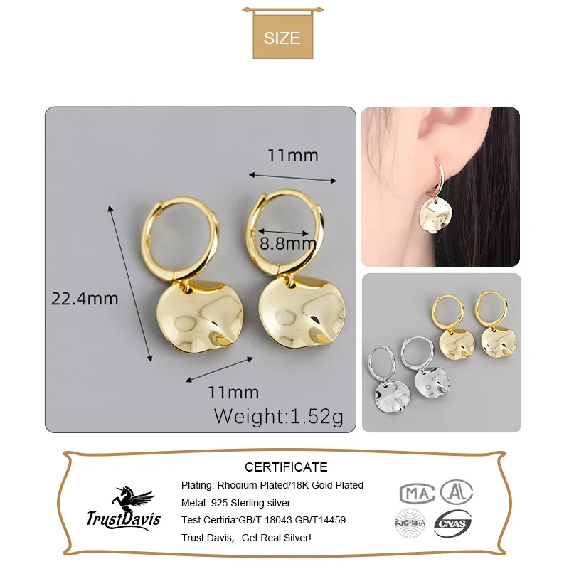 TrustDavis настоящие 925 стерлингового серебра модные минималистичн...