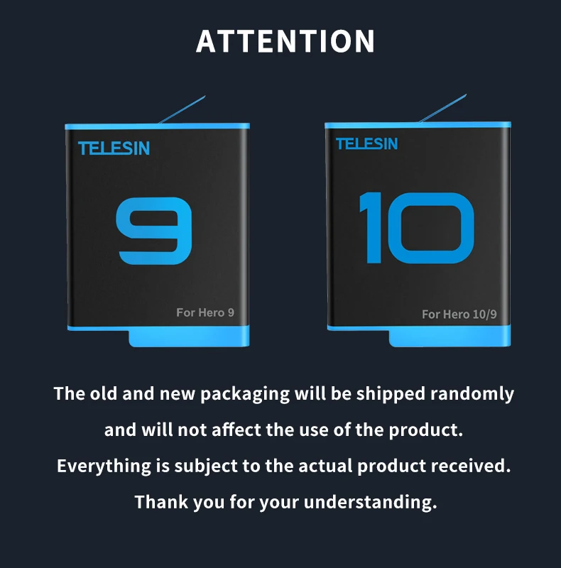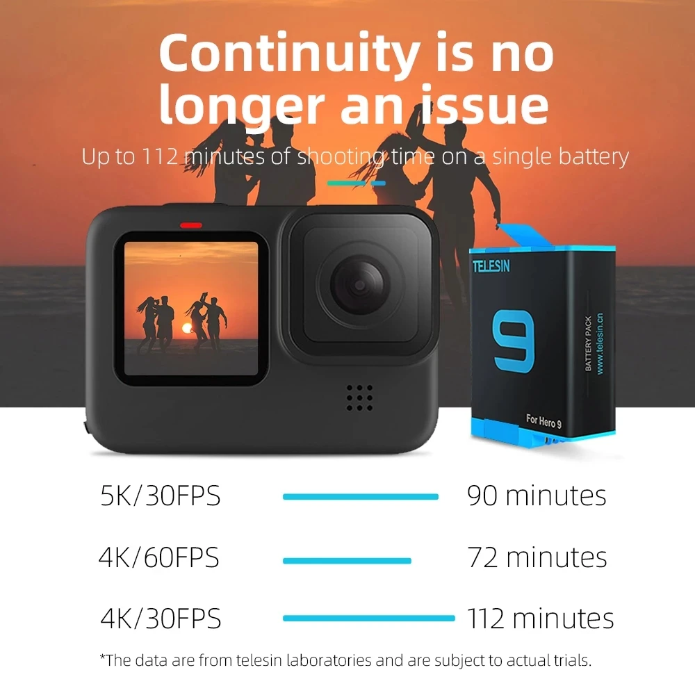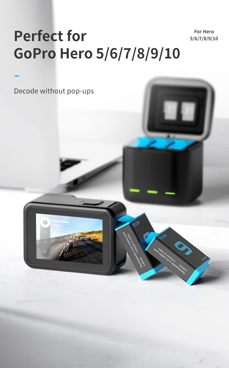 Аккумулятор TELESIN для экшн-камеры GoPro 9 10 5 6 7 8, 1750 мАч