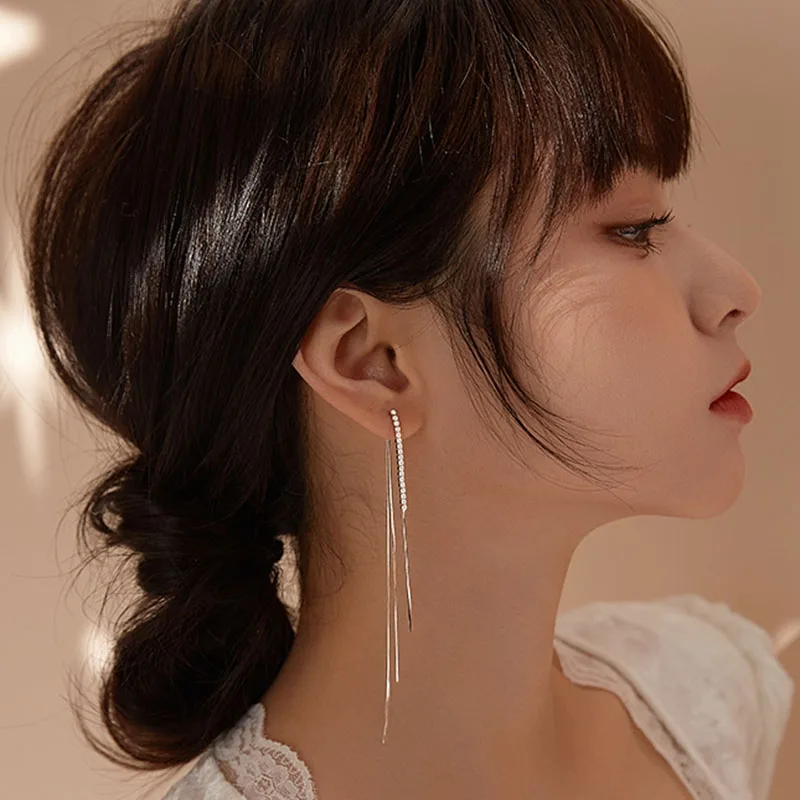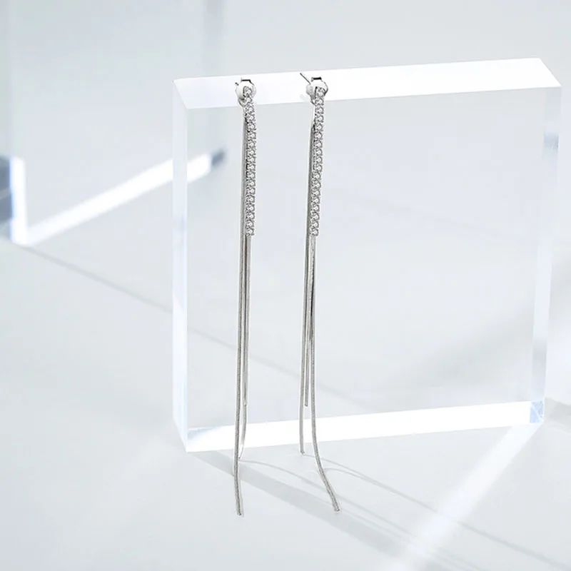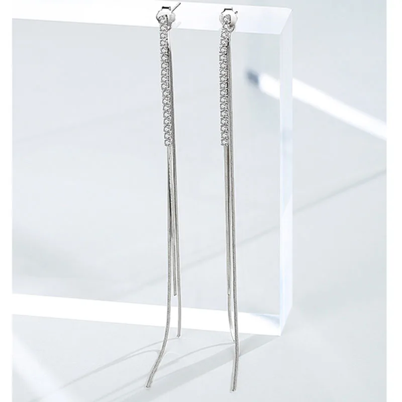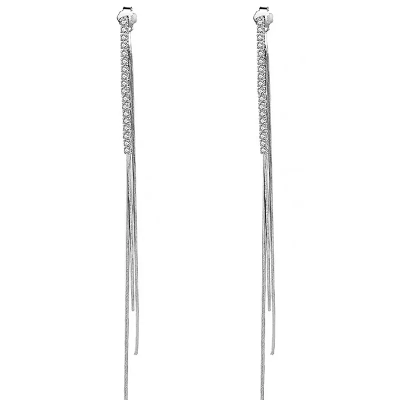 Женские серьги-кисточки из серебра 925 пробы с фианитами