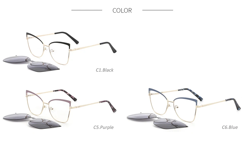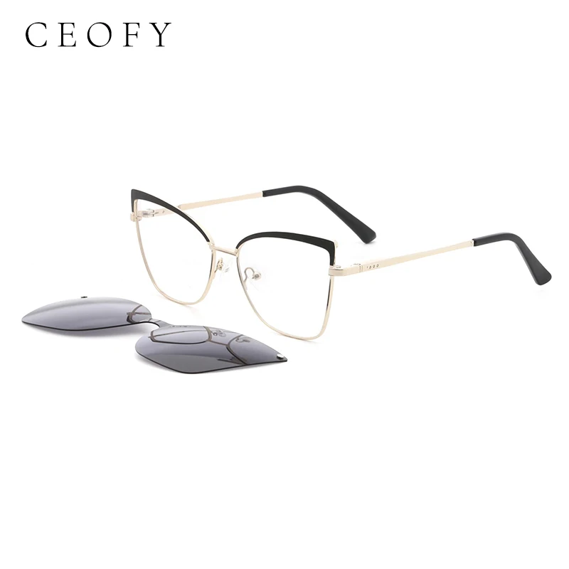 Ceofy женские очки с клипсой, оптические очки, кошачий глаз, поляризационные солнцезащитные очки, магнетизм, Стильные Классические женские очки FN19003