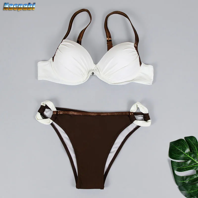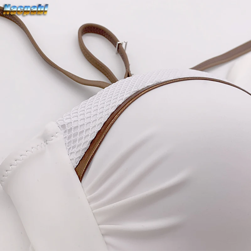 Новинка, однотонное женское бикини 2021, купальник из 2 предметов с эффектом пуш-ап, Женский Белый бандажный купальный костюм, бразильские стринги, бикини, Женская пляжная одежда