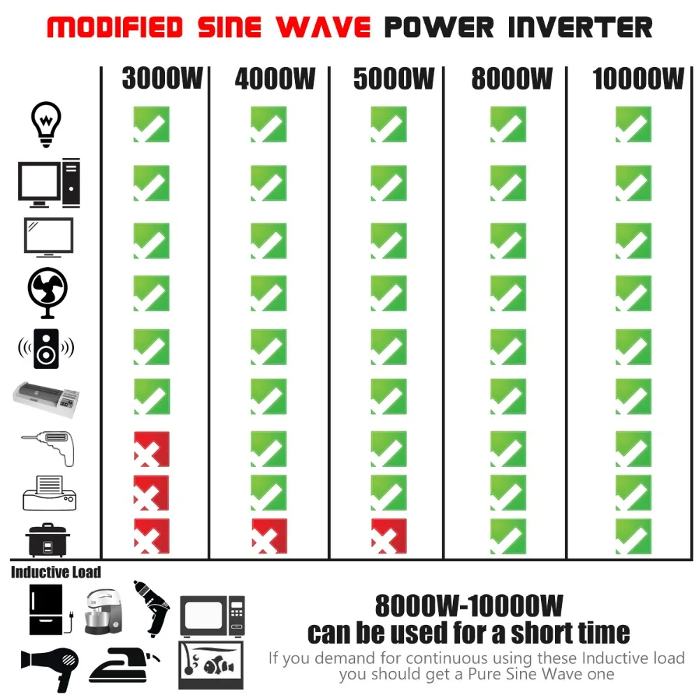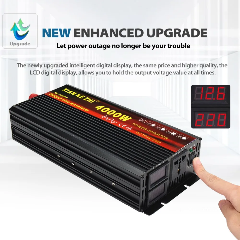 Инвертор Hcalory 2000 Вт 3000 Вт 4000 Вт 5000 Вт 12 В постоянного тока до 220 В переменного тока преобразователь чистой синусоидальной волны преобразователь напряжения автомобильный микро инвертор + светодиодный дисплей