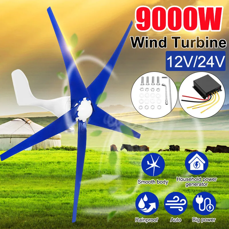 Ветряные турбины 9000 Вт, 12 В24 В, 6 лопастей, ветряной генератор,...