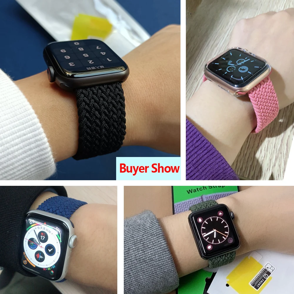 Плетеная сольная петля для Apple Watch band 44 мм 40 мм 42 мм 38 мм 40 44 мм тканевый нейлоновый эластичный браслет iWatch series 3 4 5 SE 6