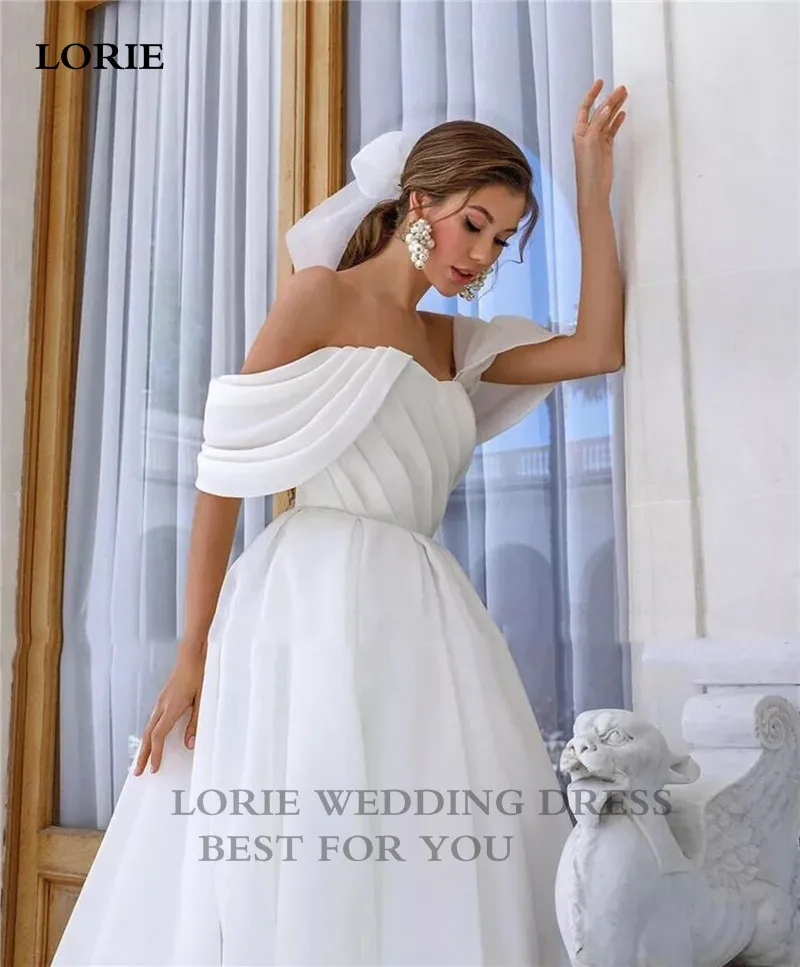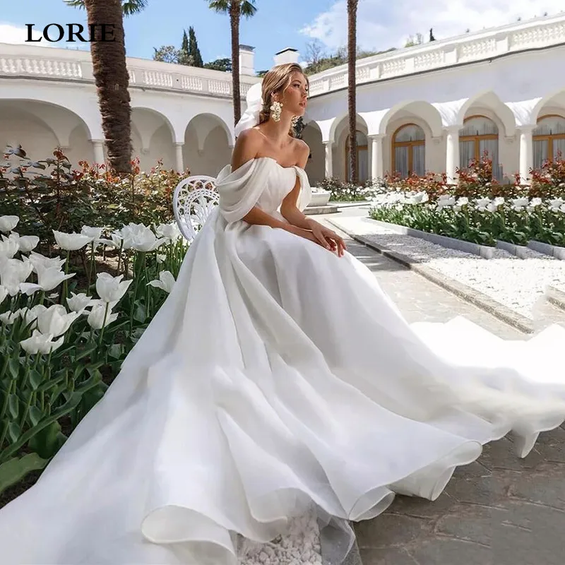 Свадебные платья принцессы LORIE с открытыми плечами из органзы, элегантное платье с коротким рукавом для свадебной вечеринки
