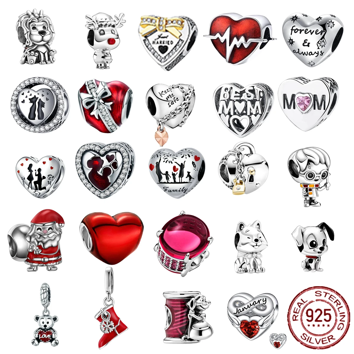 Женский браслет Pandora, Красный Рождественский браслет из серебра 925 пробы, с шармами, подходящими для браслета