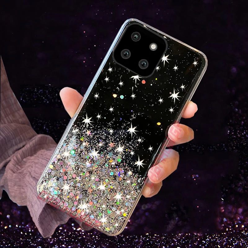 Чехол для Samsung A22, чехол с градиентными блестящими звездами, задняя крышка для телефона Samsung Galaxy A22 5G 4G GalaxyA22 A 22, бампер, мягкий силиконовый чехол