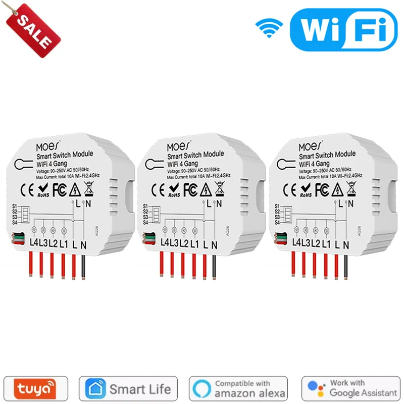 Wi-Fi светильник Модуль переключателя Tuya с поддержкой 4-х кнопочного управления, двухстороннее управление, работает с приложением Smart Life и поддержкой Alexa и google Home