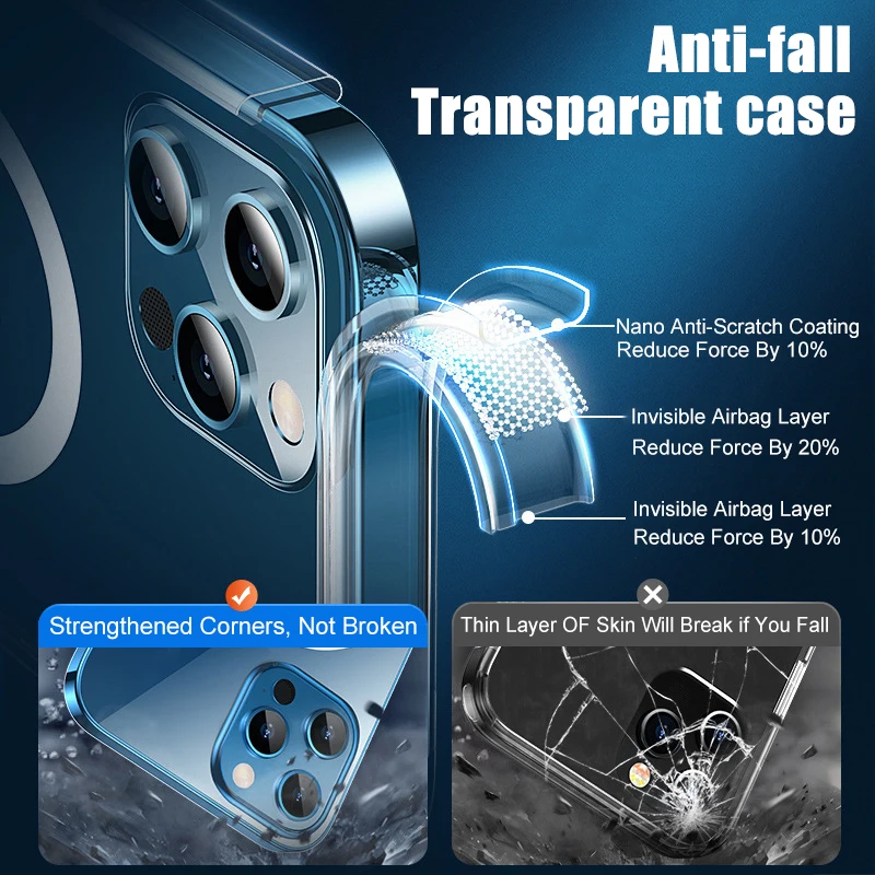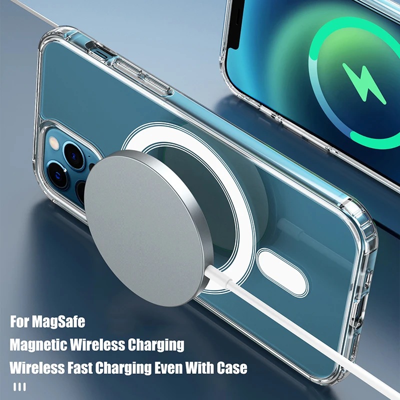 Магнитный чехол для iPhone 13 11 Pro Max, прозрачный защитный чехол для iPhone 12 mini с поддержкой беспроводной зарядки, аксессуары
