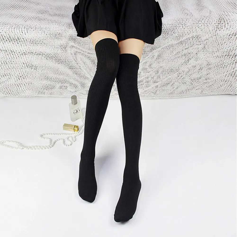 Гольфы Женские однотонные выше колена, теплые вязаные мягкие гольфы до бедра, свободные чулки, для девушек и женщин, 1 пара, весна-осень-зима