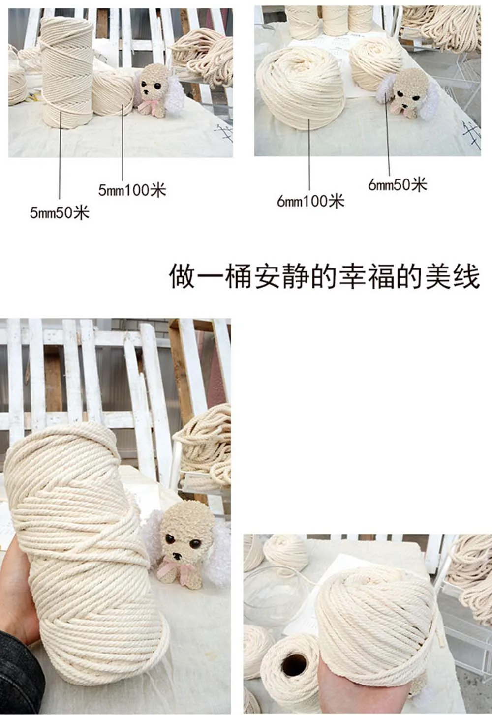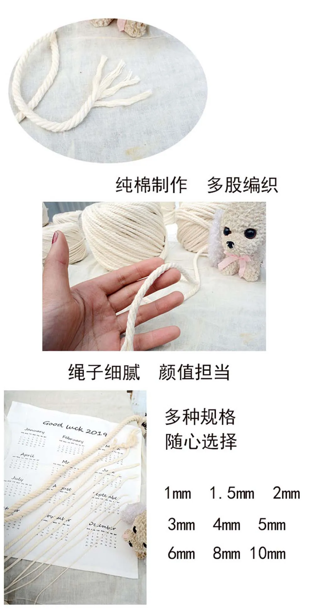 Шнур для макраме 12345681012 мм, натуральный хлопковый трос, витая веревка, макраме, сделай сам, рукоделие, вязание, вешалка для растений