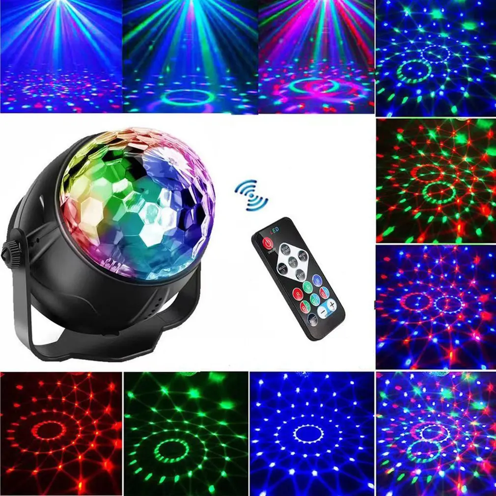 RGB диско-шар светильник для диджея, диско-свет, светодиодный прожектор, Стробоскопическая Лампа для дня рождения, вечеринки, автомобиля, клуба, бара, караоке, Рождества, со звуковой активацией