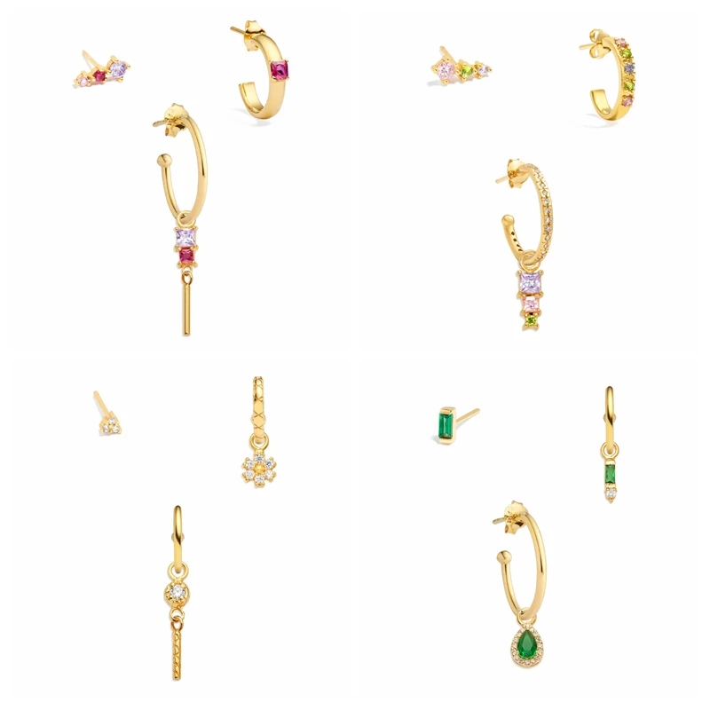 Простые серьги CANNER 3 шт.компл. с зеленым розовым цирконом, серьги, бриллиантовые серебряные серьги с цирконом, ювелирные изделия