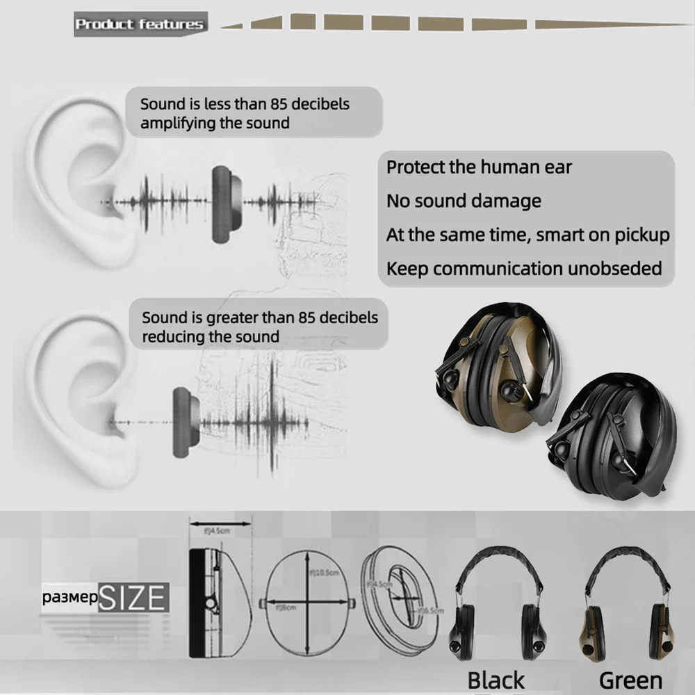 Состояние на 100% абсолютно новыйТип изделия: шумопоглощающий наушникМатериал: АБС + губкаЦвет: черный, военный зеленый (на выбор)Тип: наушникNRR: 21 дБАккумулятор: 4 аккумулятора AAA (не входят в комплект)Размер одного наушника: прибл. 11 х 8 х 2 см/4,3x3,1 x 0.7inСтиль: Складной
