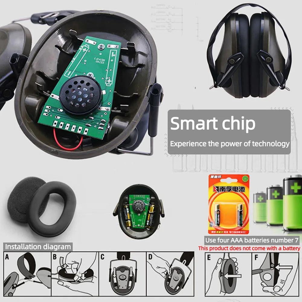 1. Складная повязка для удобной переноски и хранения.2. Подходит для стрелков, охотников и рабочих в шумных условиях.3. С уникальным умным чипом и NNR21DB, он может работать эффективно.4. Питание от 4 батареек AAA (не входят в комплект).5. Широкая оправа головы и толстая губка эффективно уменьшают давление, которое пользователи носят.