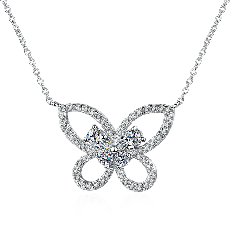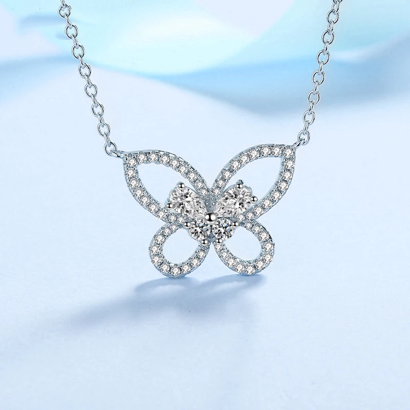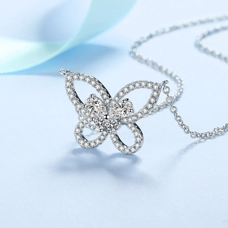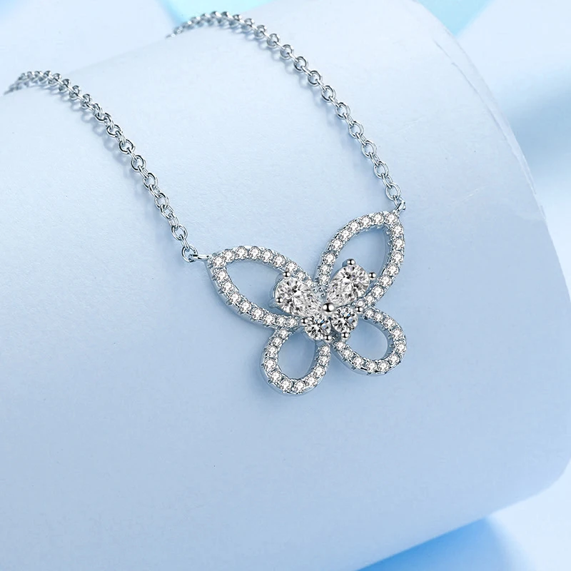 Moissanite, бриллиантовые ожерелья, 14 к, белое золото, платина, Стерлинговое Серебро, ожерелье D, цвет VVS1, бриллиантовая бабочка, кулон, ювелирное изделие