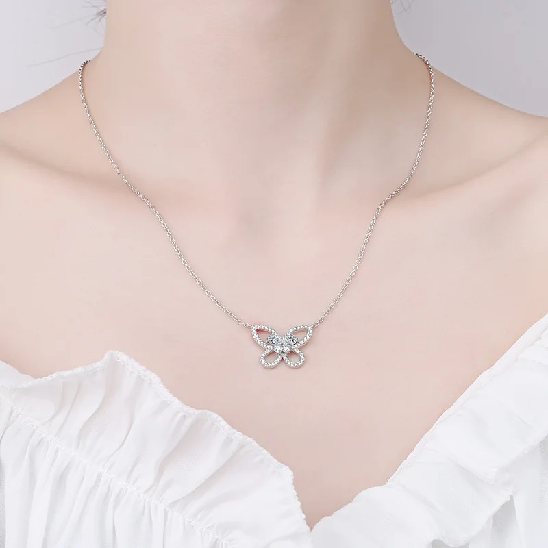 Ожерелье женское из серебра 925 пробы с муассанитом, колье с покрытием из белого золота 14 к, колье с подвеской-бабочкой из бриллиантов vs1, цвет D