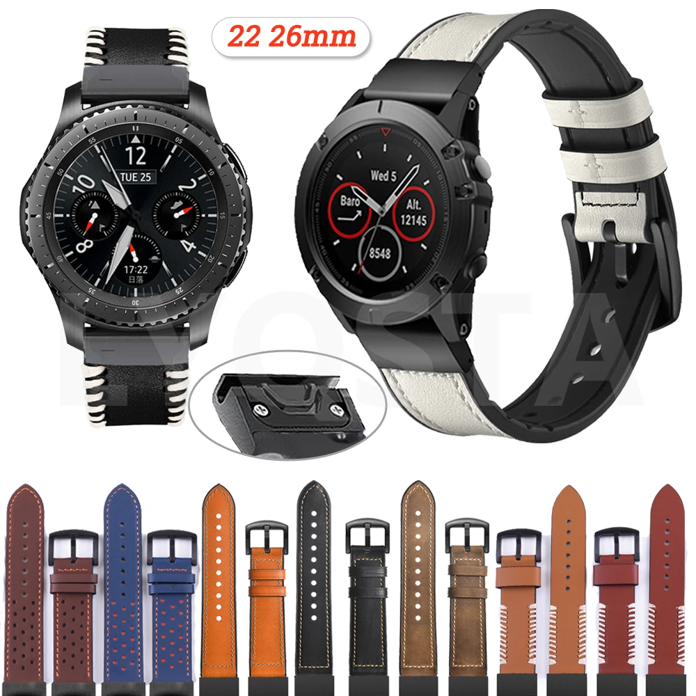 Ремешок из кожи для наручных часов Garmin Fenix 6 6S 6X Pro 5 5X Plus 3HR 935
